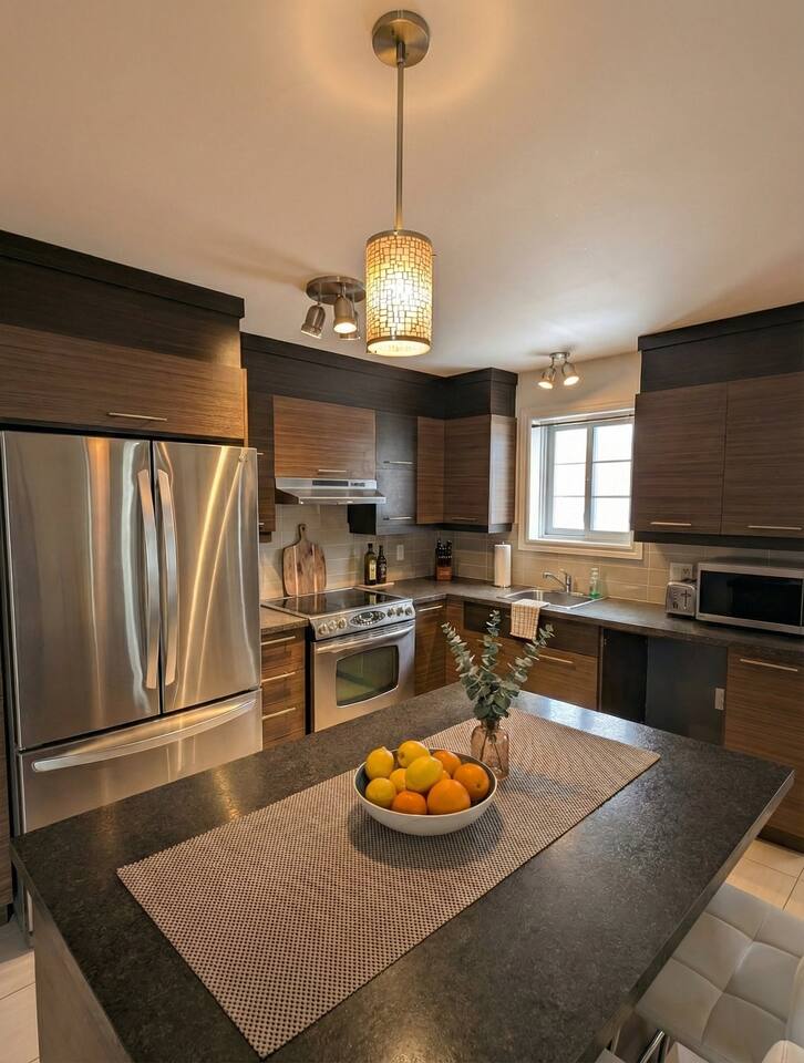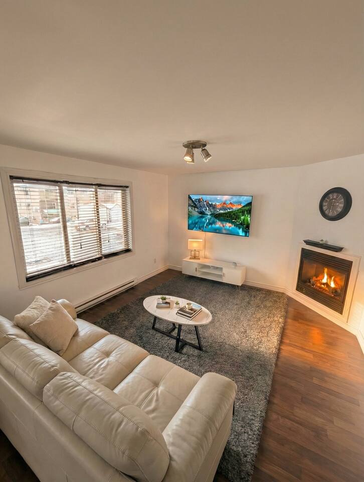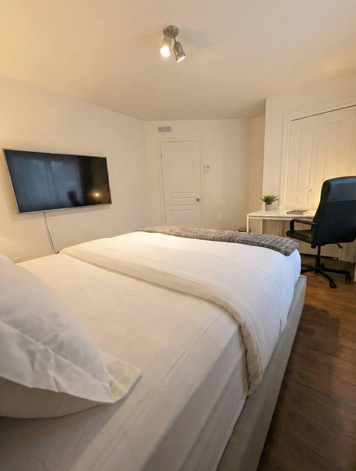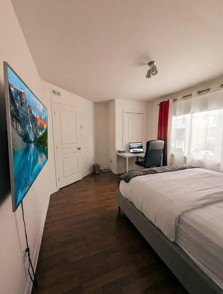 • Arrive with Ease: Reach your stylish retreat in just 15 minutes from YUL Airport. • Living Area: Unwind in the chic living room on the plush sofa, and stream your favorite shows on the large Smart TV. • Dedicated Workspace: Stay productive with a proper dedicated workspace and high-speed Wi-Fi, perfect for remote work or catching up on emails. • Kitchen: The sleek, fully equipped kitchen features high-end appliances and a Keurig coffee machine (with pods included) to start your day perfectly. • Bedroom: Your serene retreat awaits in the private bedroom, complete with a comfortable queen bed and its own second Smart TV for late-night viewing. • Private Hot Tub: The ultimate luxury. After a long flight or a busy day, soak your cares away in your very own hot tub, available exclusively for your use. Outdoor Sanctuary • Large Balcony: Step out onto your expansive private balcony to enjoy your morning coffee or an evening cocktail. This property offers a unique opportunity to enjoy the best of all worlds: unparalleled access, a productive environment, and a private, luxurious escape.