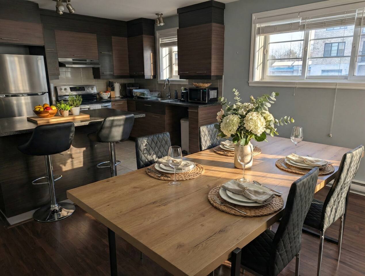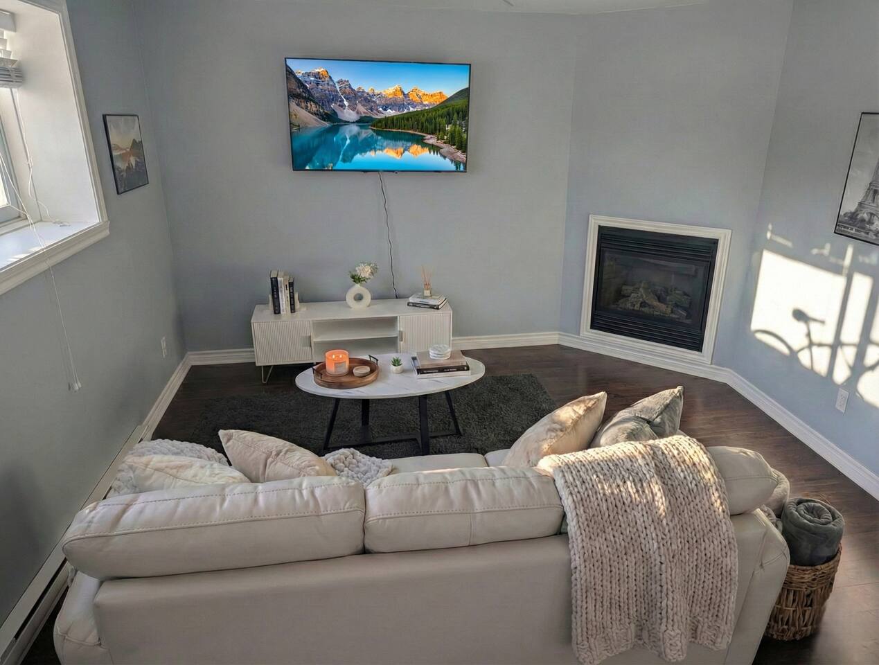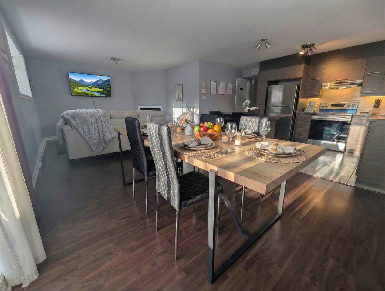Unwind in total seclusion. This self-contained retreat is entirely yours, featuring a private side entrance thoughtfully designed to offer you a completely undisturbed and relaxing experience. • Smart Lock Access: Enjoy the freedom of independent, secure self check-in at any hour of the day or night. • Two Free Parking Spots: A rare convenience—park up to two vehicles easily in your own dedicated spaces. • Effortless Transit: Exceptionally close to YUL (just 15 minutes away), ensuring a smooth and incredibly convenient start and end to your trip.