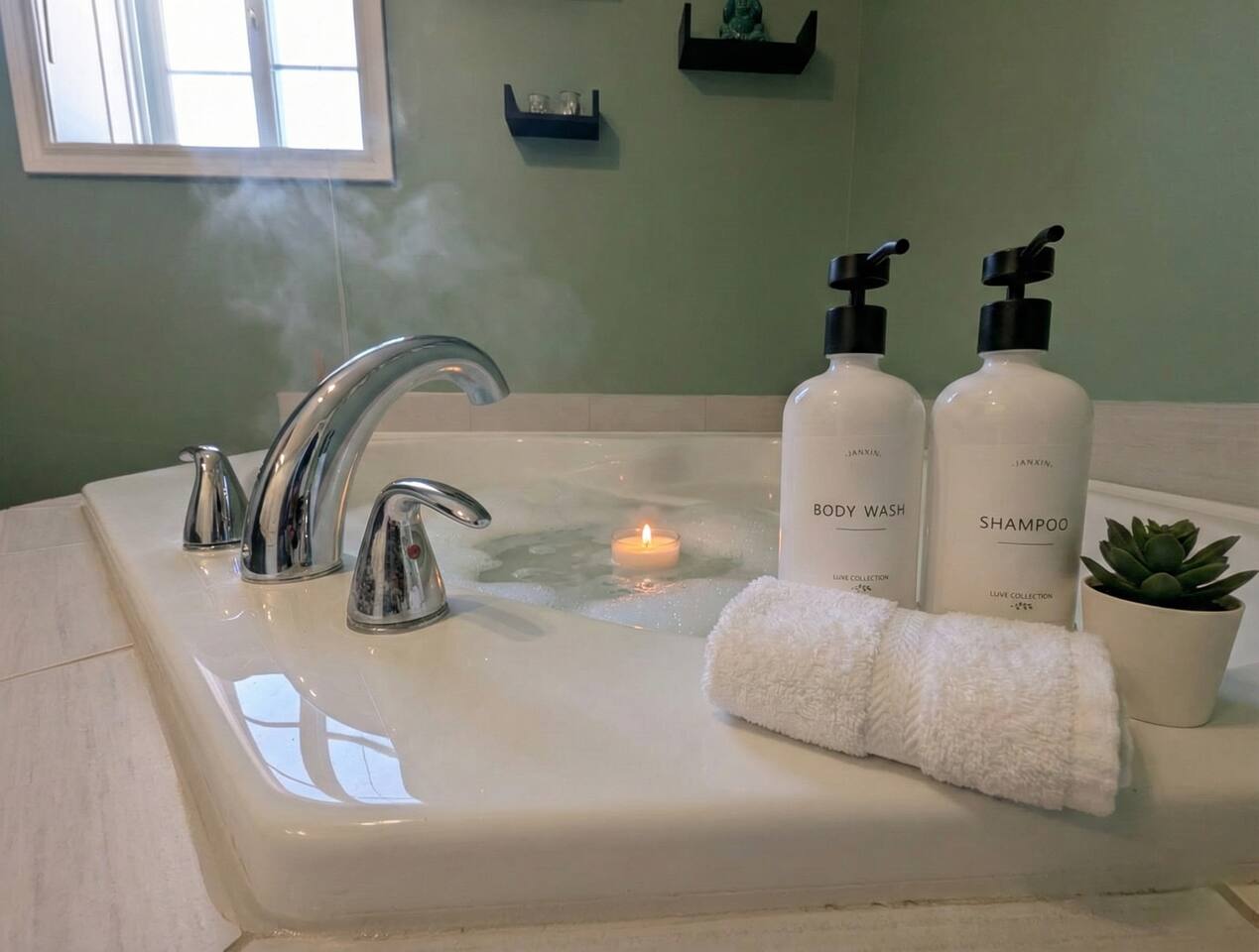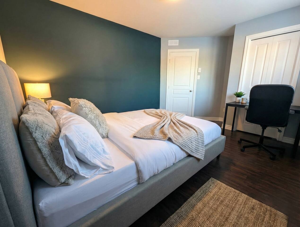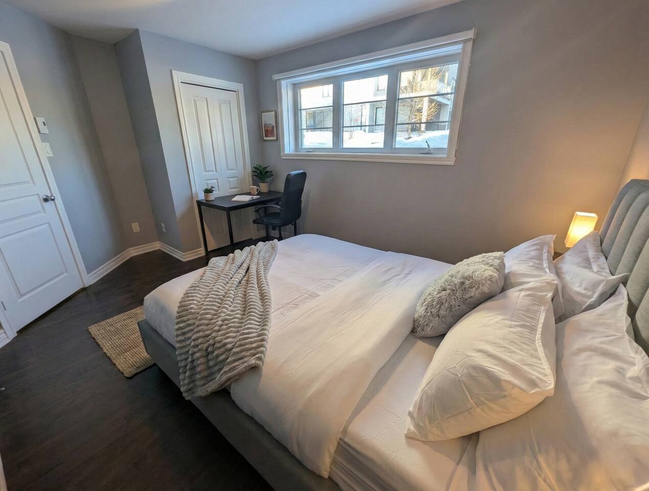 • Quick Commute: Touch down and check in effortlessly—your stylish sanctuary is a mere 15-minute drive from YUL Airport. • Cozy Living Space: Kick back on the ultra-comfortable sofa and catch up on your favorite streaming shows on the spacious Smart TV. • Remote Work Ready: Get things done at the dedicated desk setup, powered by high-speed Wi-Fi for seamless remote work or virtual meetings. • Gourmet Kitchen: Whip up meals in a streamlined, fully-stocked kitchen equipped with top-tier appliances and a complimentary Keurig coffee station (pods included!). • Restful Bedroom: Drift off in your tranquil private bedroom, featuring a plush queen-sized bed and a bonus second Smart TV for cozy movie nights. • Your Personal Spa: Elevate your stay with an exclusive hot tub—the perfect remedy for travel fatigue or a long workday, reserved entirely for you. Outdoor Sanctuary • Spacious Balcony: Step outside to your generous private balcony, the ideal spot for your morning brew or an evening glass of wine. This space delivers a rare combination: unmatched convenience, a work-ready environment, and a high-end private retreat.