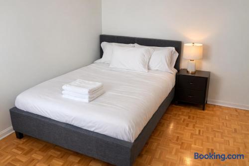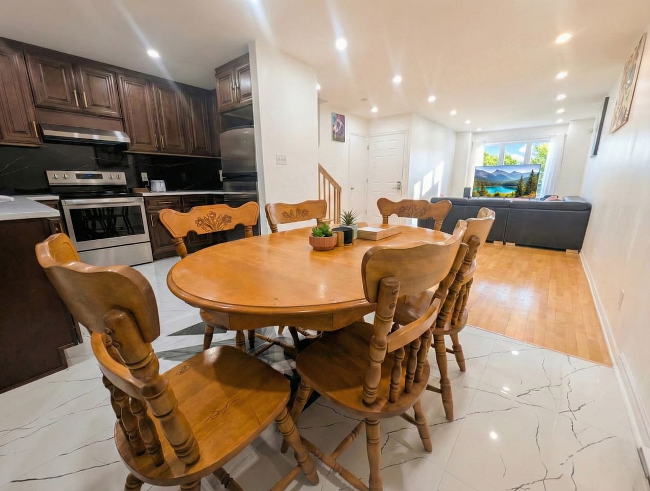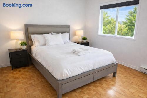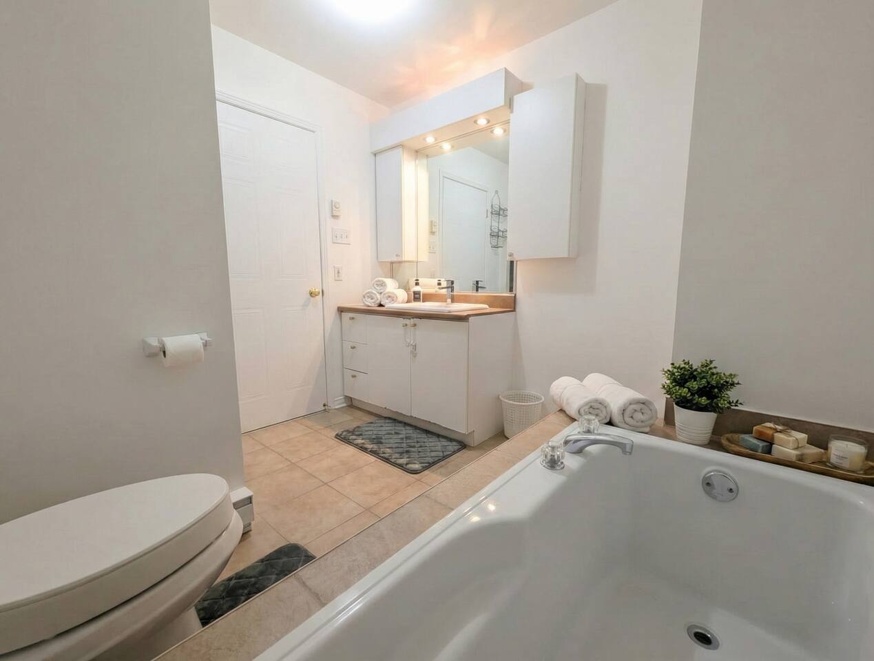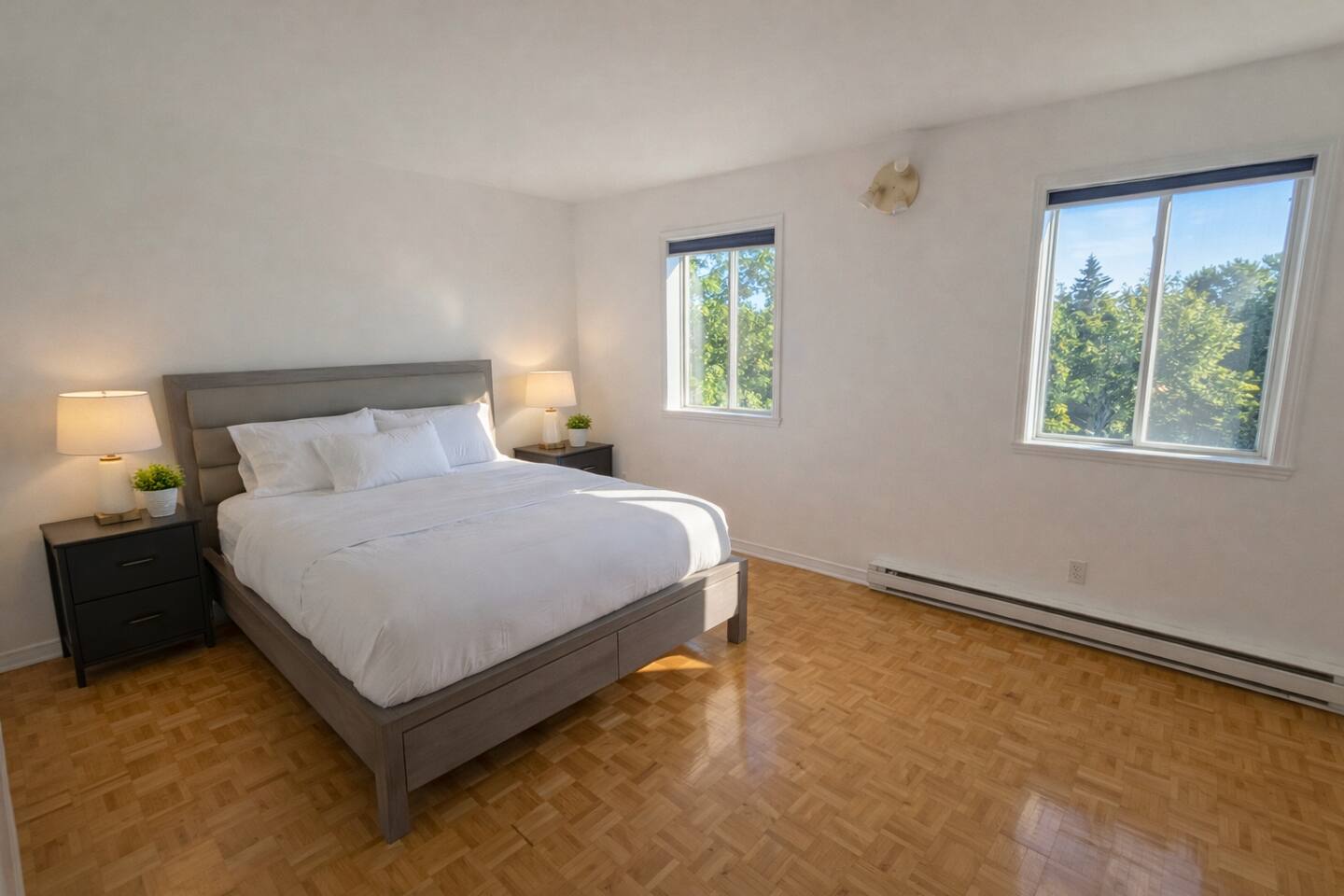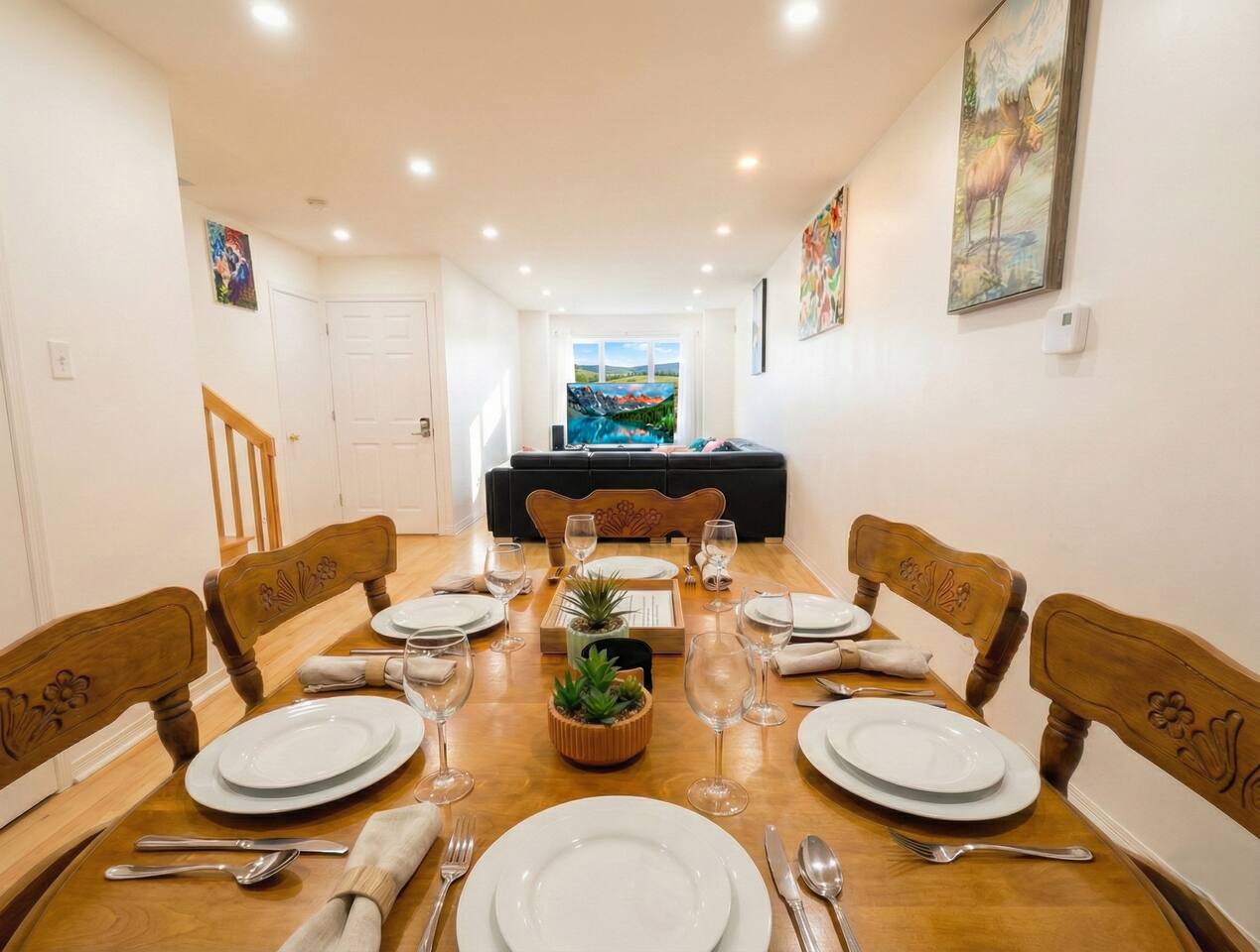 Relax in this spacious 2-bedroom house located in a vibrant part of central Laval. Just minutes from major shopping centers and a short drive to Montreal, this unit features a large living room with a huge TV and sound system—perfect for movie nights. Enjoy a fully equipped kitchen with a Keurig machine, a proper dining area, and 1.5 baths. Includes one free parking spot and access to shared laundry. Ideal for families or friends seeking a comfortable, well-connected home base.