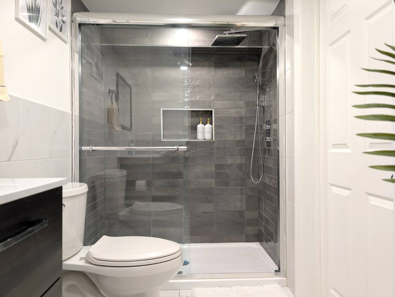 Enjoy complete privacy in your own private oasis. This stylish retreat offers you the entire space, with a private entrance to the side of the property, ensuring your stay is truly peaceful and undisturbed. • Self Check-In: Arrive on your schedule with our simple and secure smart lock. • Parking: Enjoy the extraordinary convenience of free dedicated parking spaces. • Location: Perfectly situated just 15 minutes from Montréal-Trudeau International Airport (YUL), making arrivals and departures effortless.