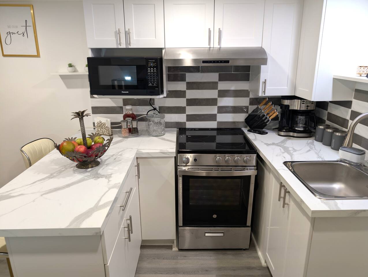 Modern Comfort Near YUL Airport: Your Home Away From Home • Arrive with Ease: Reach your stylish retreat in just 15 minutes from YUL Airport. • Home-Style Kitchen: Whip up a feast in the fully equipped kitchen which includes coffee, tea, pots, pans, cutlery, and an air fryer. • Cloud-Like Comfort: Drift off to dreamland on the memory foam bed adorned with luxurious high-thread count linens. • Entertainment at Your Fingertips: Relax and unwind with a movie marathon on the 55" smart TV with Netflix. • Hassle-Free Convenience: Enjoy the freedom of a washer and dryer in-unit, perfect for longer stays. • Electric Vehicle Ready: Free parking with a Level 2 EV charger for your eco-conscious travels. • Smooth Check-In: Arrive at your own pace with convenient self-check-in using a keypad. We look forward to welcoming you to your private getaway.